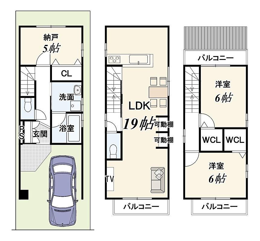 | 間取り | 2SLDK | 建物構造 | 木造3階建 |