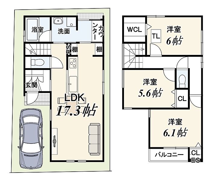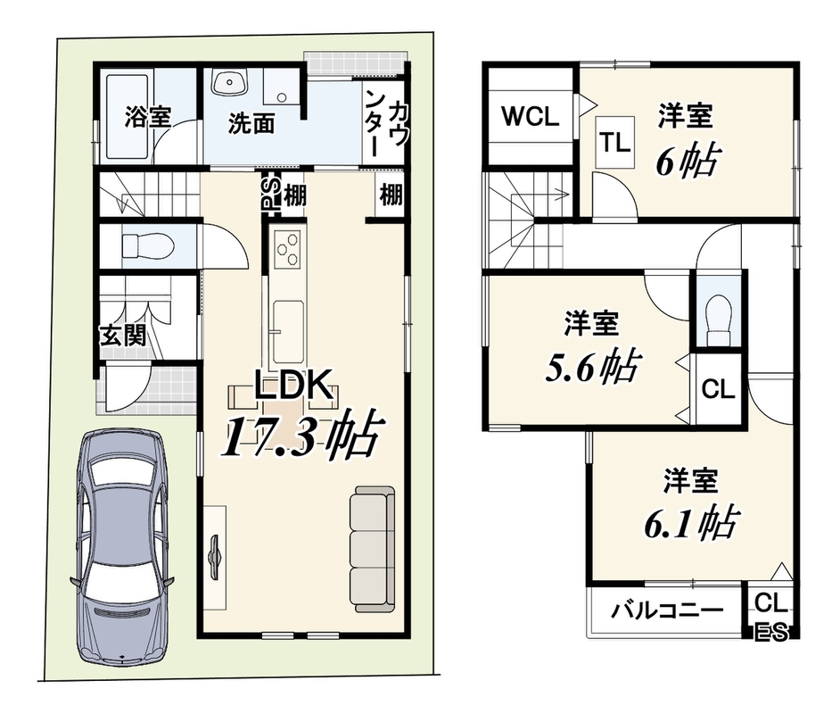 - ※完成予想図やCG合成画像は、門塀・植栽・庭・外観等、実際とは多少異なる場合があります。