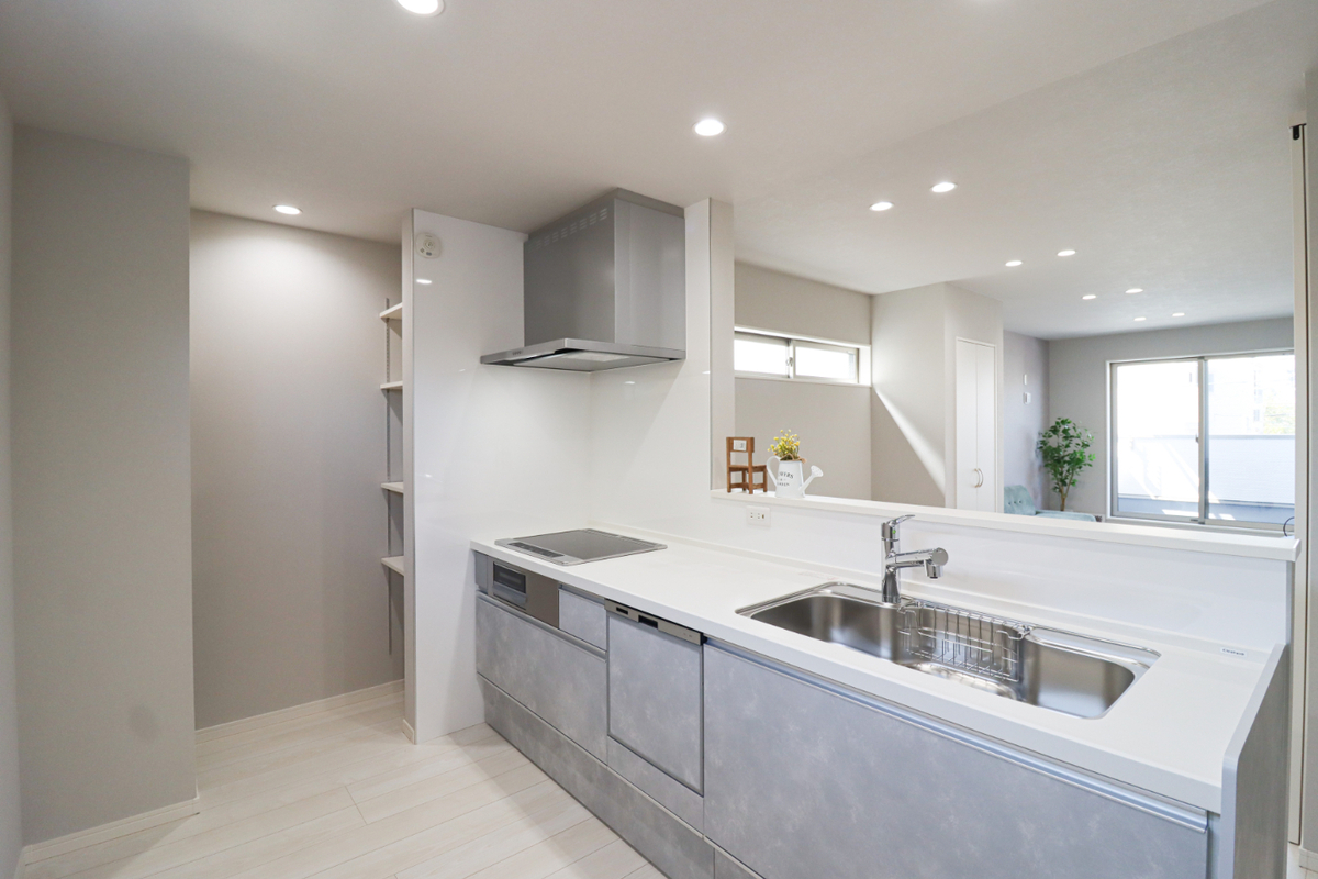 ご飯の準備や後片付けの時短になる食器洗い乾燥機やホーロートップガスコンロ、グリルが備え付け!充実設備で家事の時間が短縮され、家族のくつろぎタイムもゆっくりもてますね♪