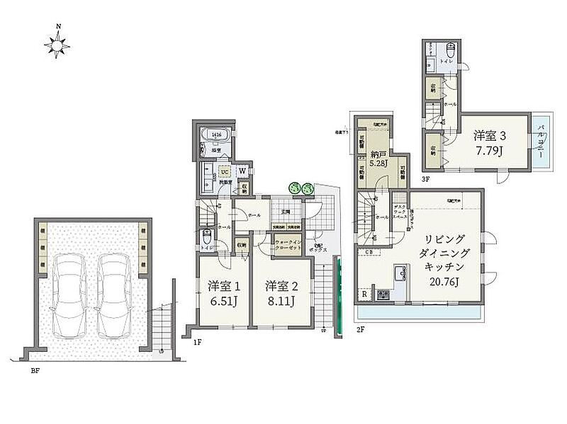 - ※完成予想図やCG合成画像は、門塀・植栽・庭・外観等、実際とは多少異なる場合があります。