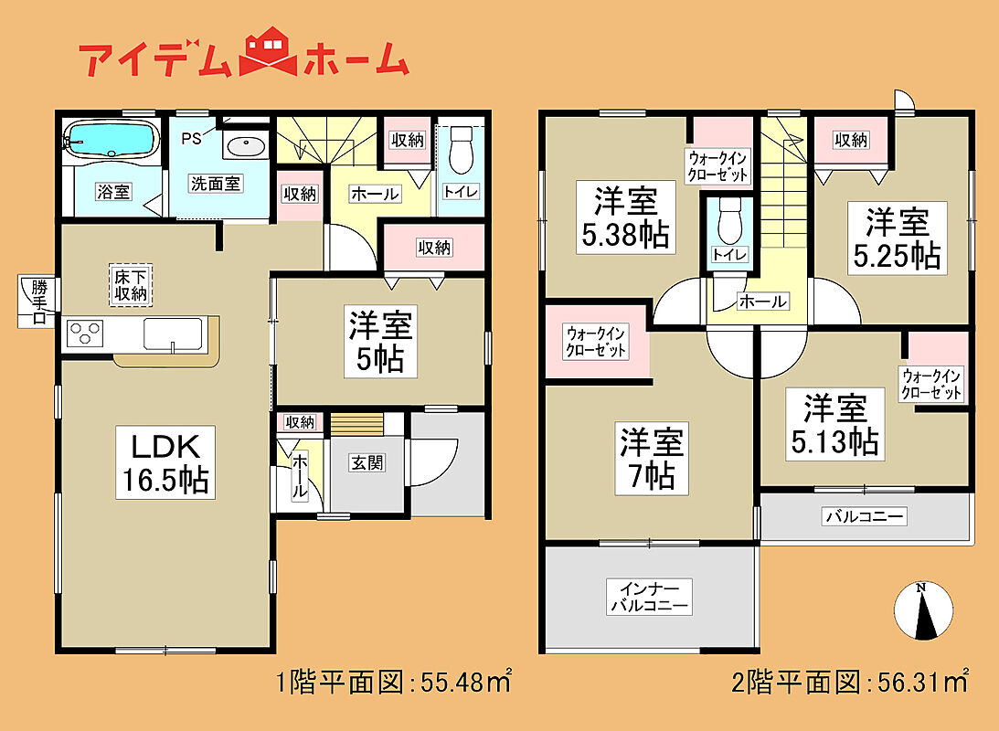 敷地面積56坪以上!WIC等収納豊富な間取り!リビングは日当たり良好!