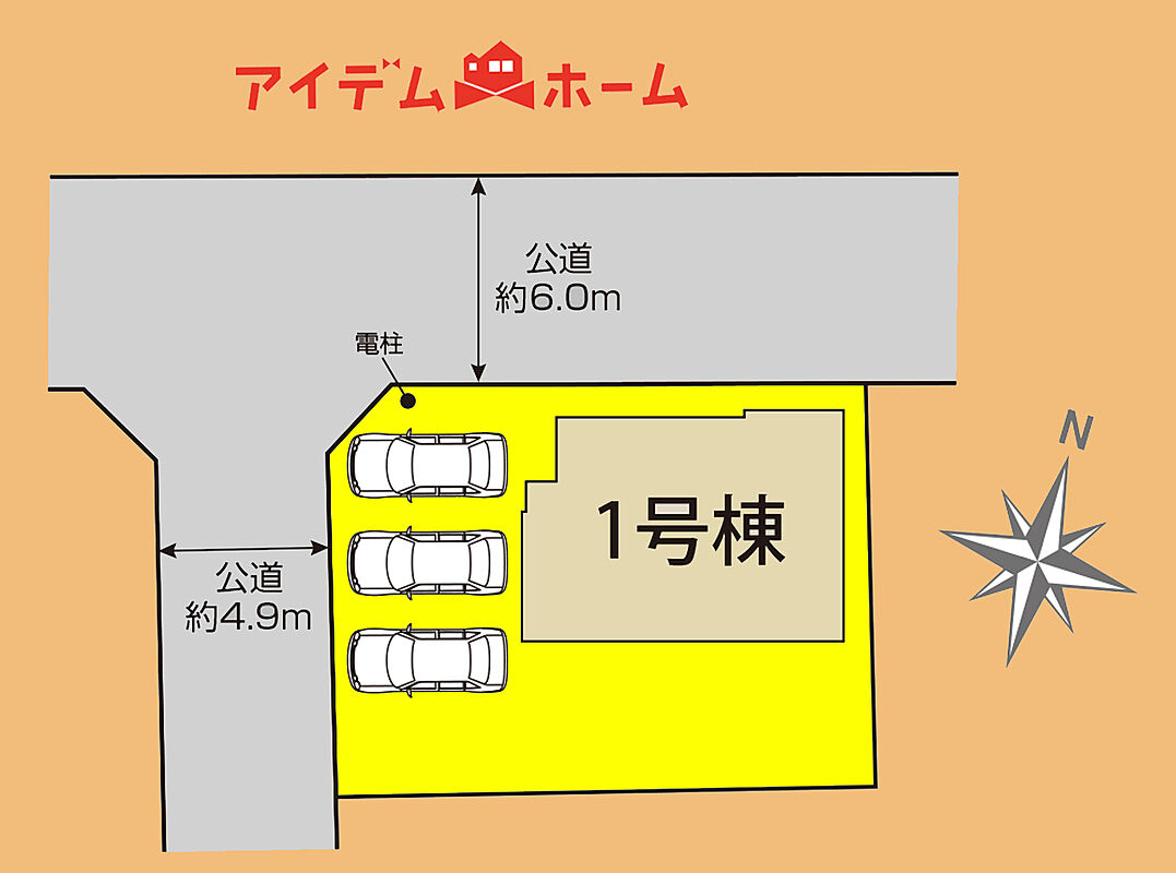 | 駐車場 | 並列駐車3台可能 | 道路の幅員 | 北側幅員6.0m公道、西側幅員4.9m公道 |