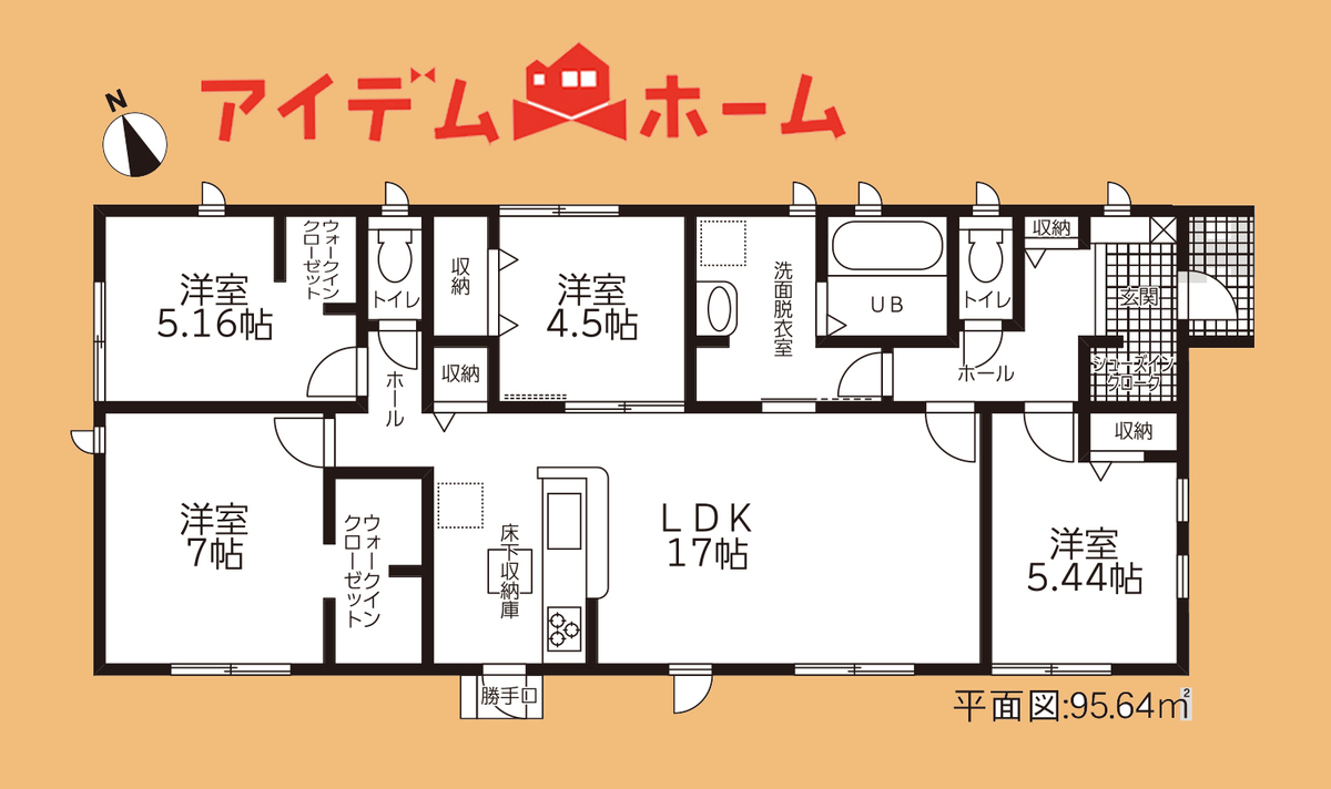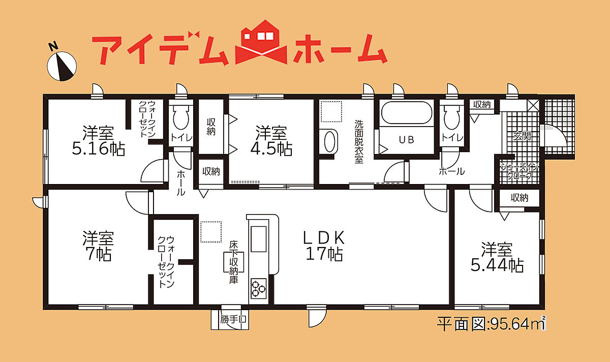 ウォークインクローゼット等収納豊富な間取り!広々洗面で朝の身支度もスムーズ!