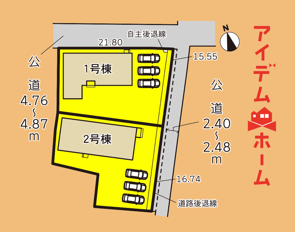 | 駐車場 | 駐車3台可能 | 道路の幅員 | 北側幅員4.76m公道~東側幅員2.40m公道 |