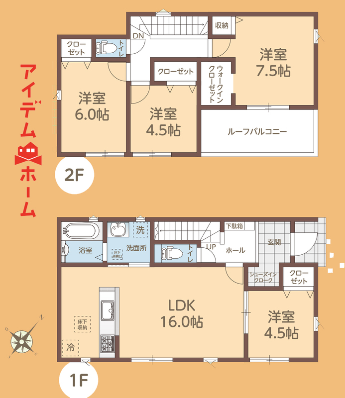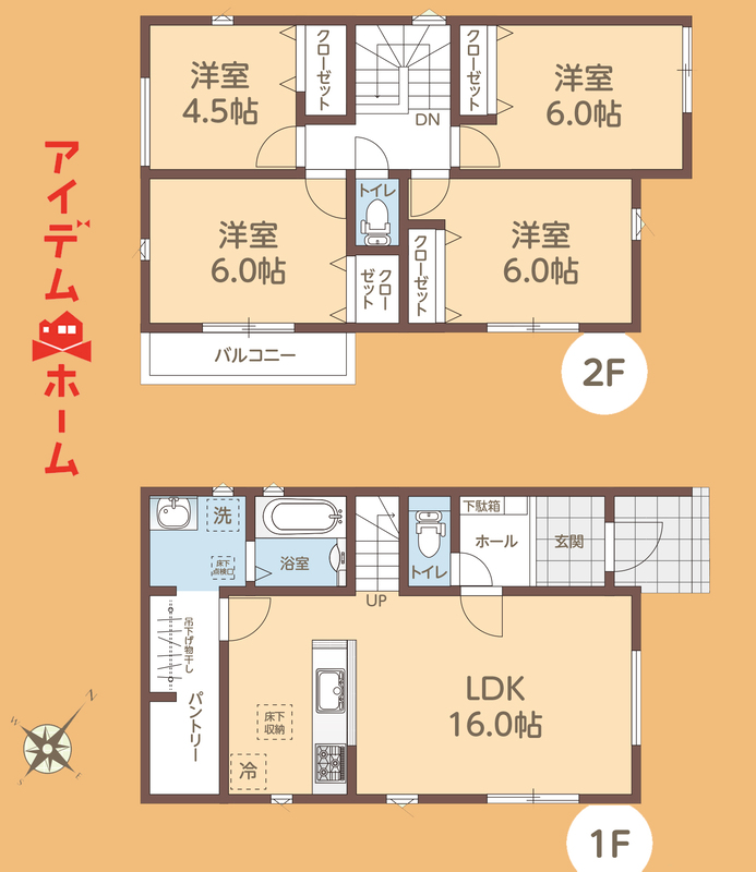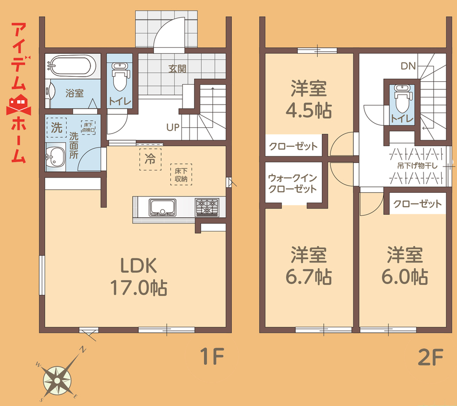 WIC等収納豊富な間取り!雨の日でも安心の室内物干し付き!並列駐車2台可能!