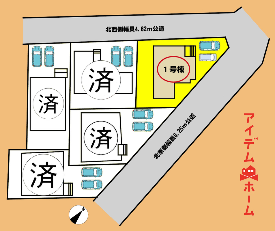 | 駐車場 | 駐車2台可能 | 道路の幅員 | 北西側幅員4.62m公道、北東側幅員6.25m公道 |