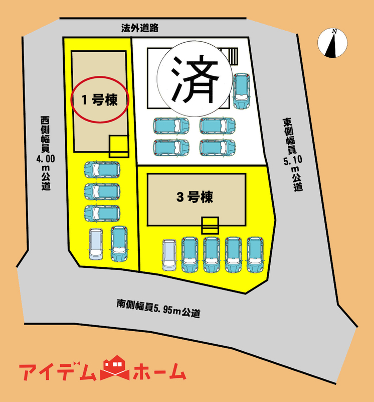 | 駐車場 | 駐車5台可能 | 道路の幅員 | 西側幅員4.01m公道、南側幅員5.95m公道 |
