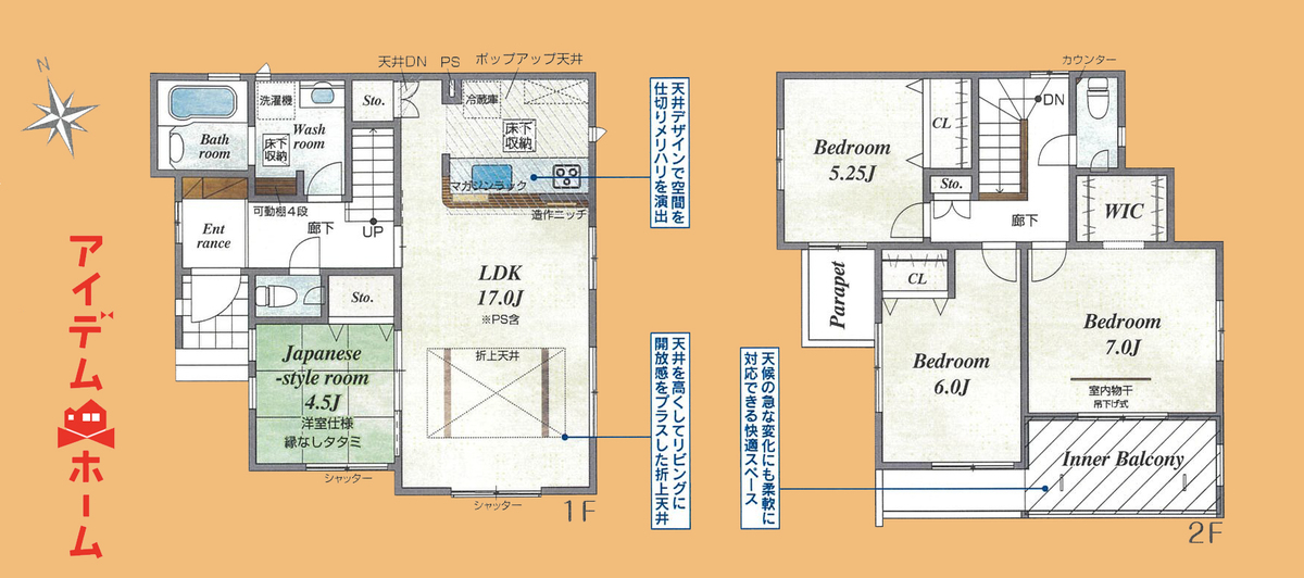 ウォークインクローゼット等収納豊富な間取り!広々リビングは日当たり良好!