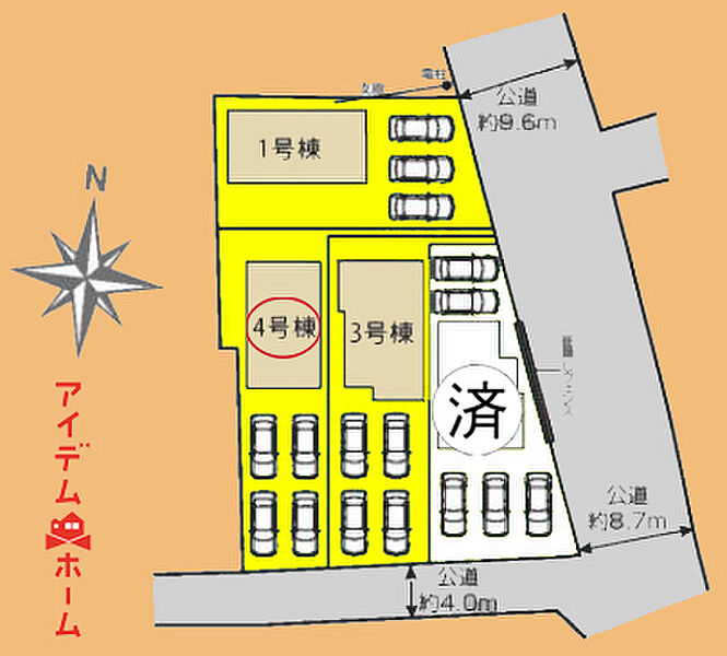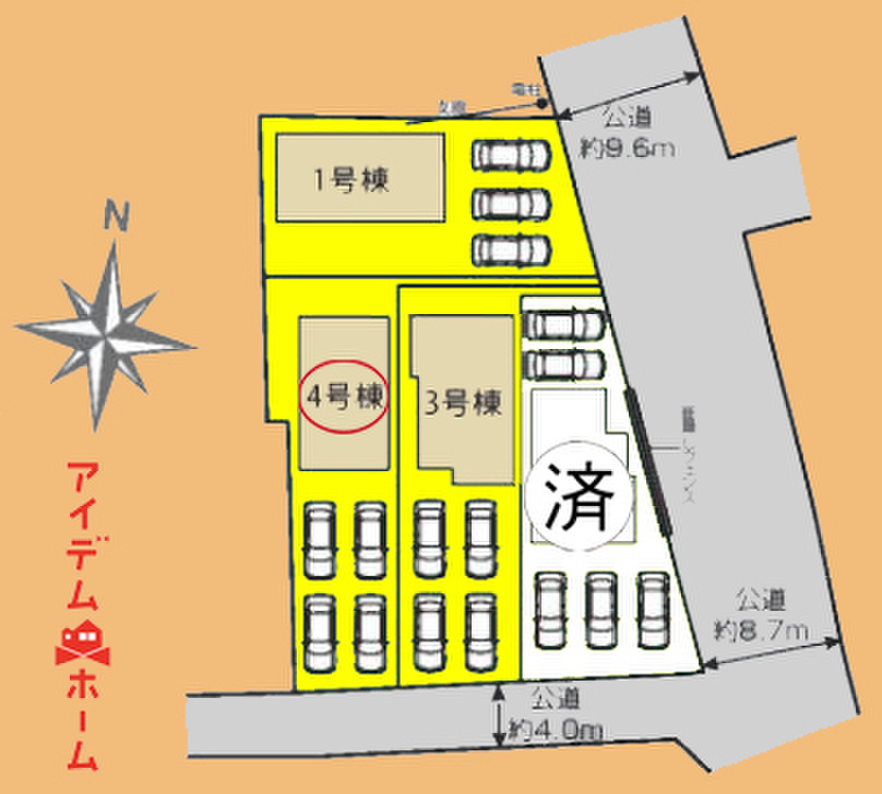 | 駐車場 | 駐車3~4台可能 | 道路の幅員 | 東側幅員8.7m公道、南側幅員4.0m公道 |