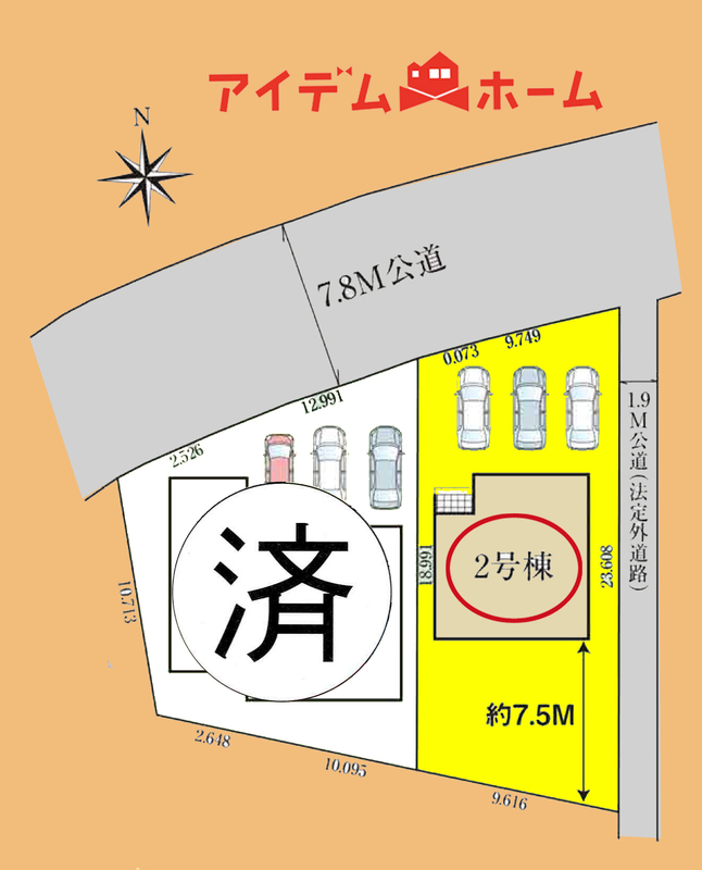 | 駐車場 | 駐車3台可能 | 道路の幅員 | 北側幅員7.8m公道、東側1.9m公道 |