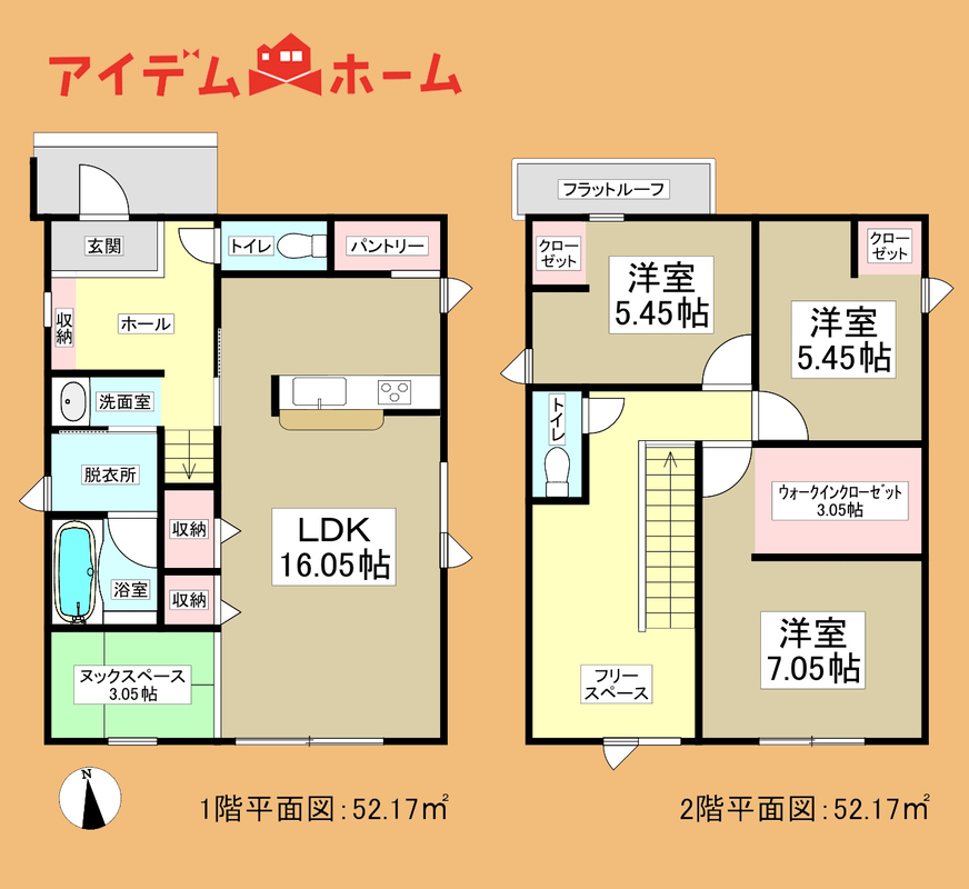 オール電化!南向き!広々リビングは日当たり良好!収納豊富な間取り!