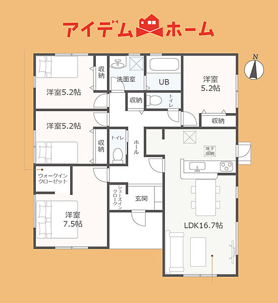 平屋物件!敷地面積70坪以上!ウォークインクローゼット等収納豊富な間取り!