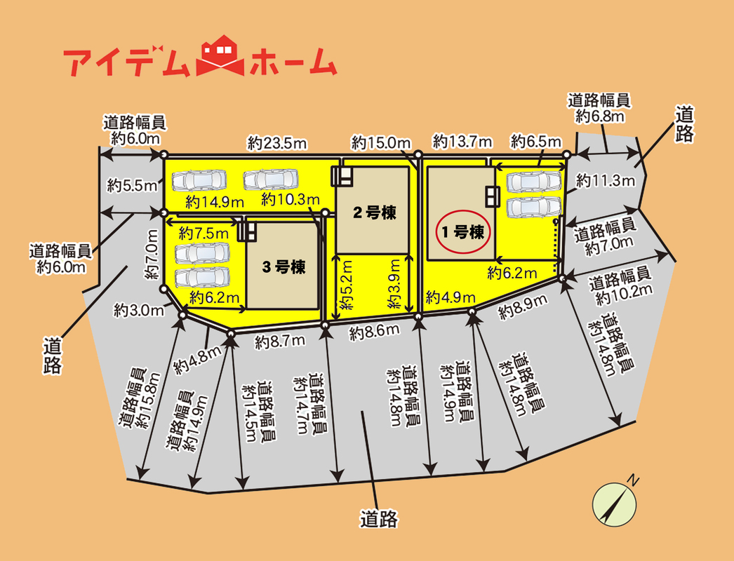 | 駐車場 | 駐車2台可能 | 道路の幅員 | 北側幅員6.8m公道、東側幅員14.5m公道 |