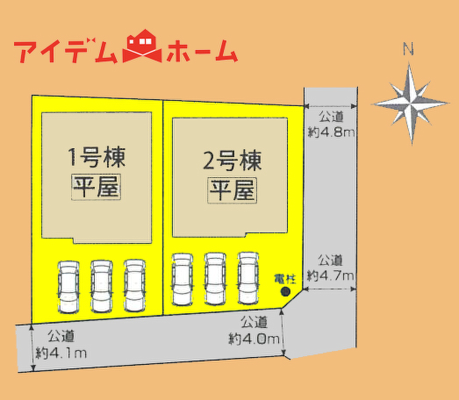 | 駐車場 | 駐車3台可能 | 道路の幅員 | 東側幅員4.78m公道、南側幅員4.09m公道 |