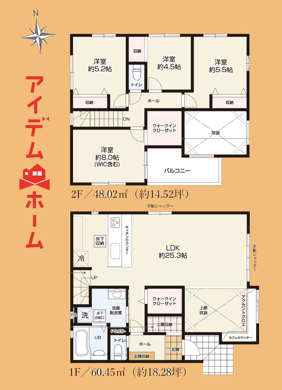 駐車3台可!ウォークインクローゼット等収納豊富な間取り!