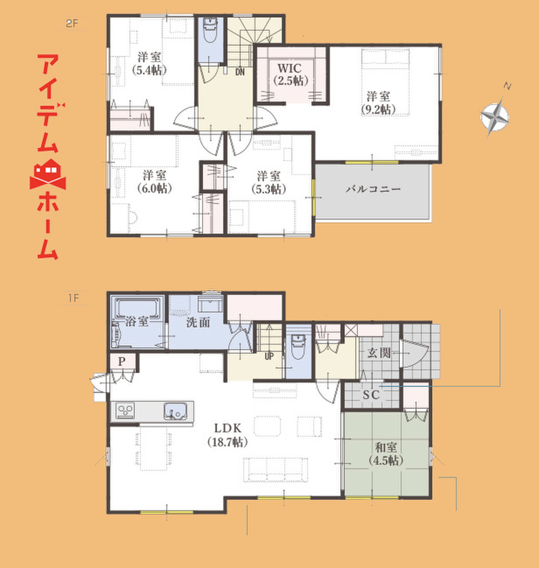 WIC等収納豊富な間取り!朝の身支度も快適な広々洗面室!