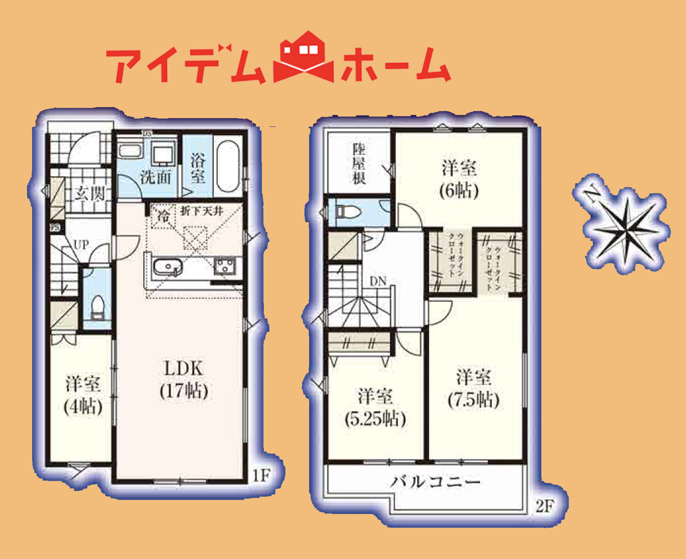 7.5帖の広々主寝室!広々リビングは日当たり良好!収納豊富な間取り!