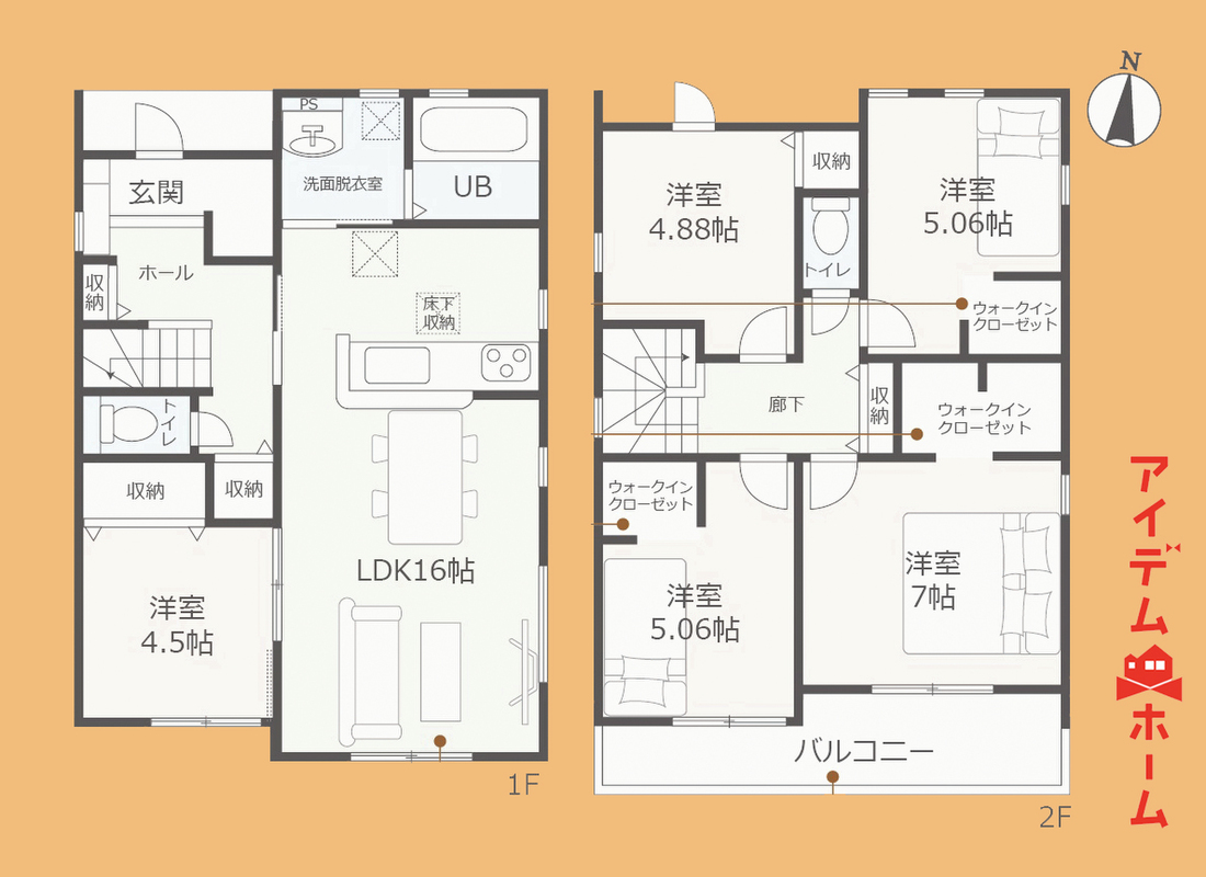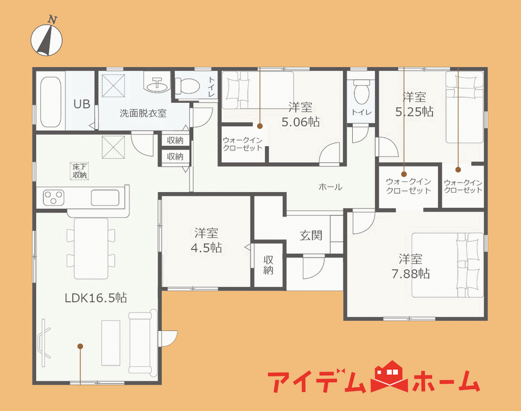リビング16帖以上!ウォークインクローゼット等収納豊富な間取り!
