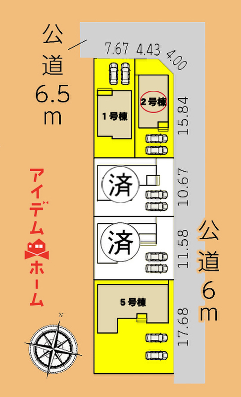 | 駐車場 | 駐車2台可能 | 道路の幅員 | 東側幅員6m公道、北側幅員6.5m公道 |