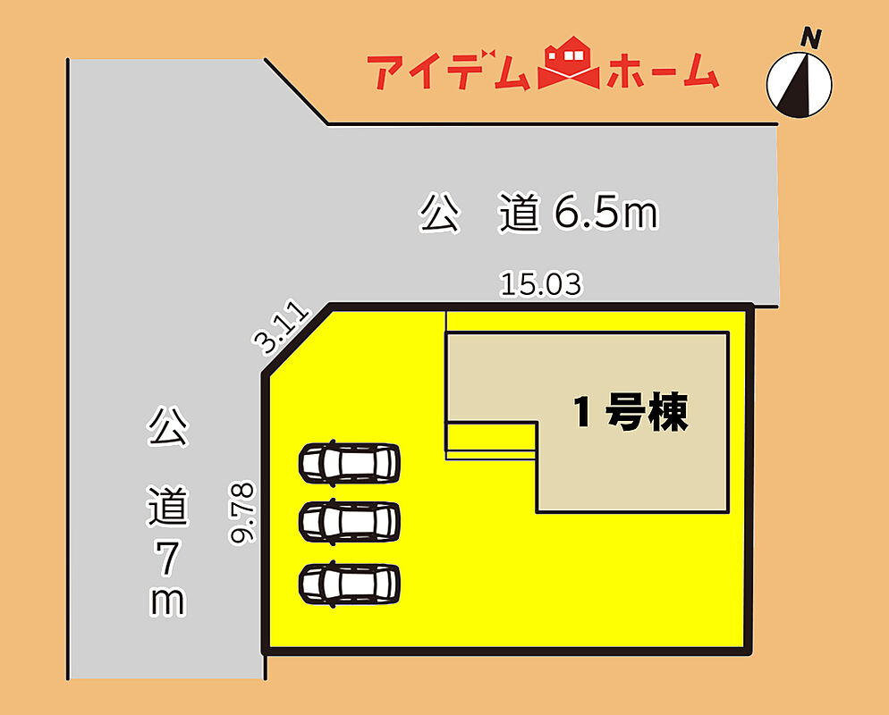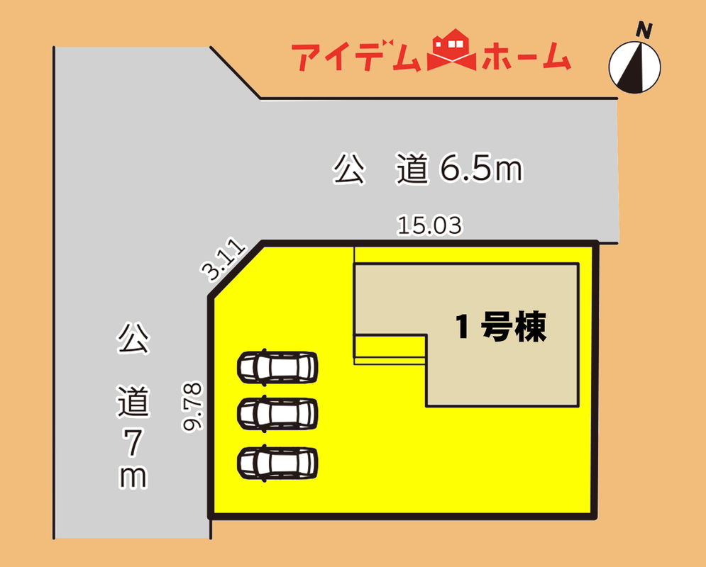 | 駐車場 | 駐車3台可能 | 道路の幅員 | 北側幅員6.5m公道、西側幅員7m公道 |