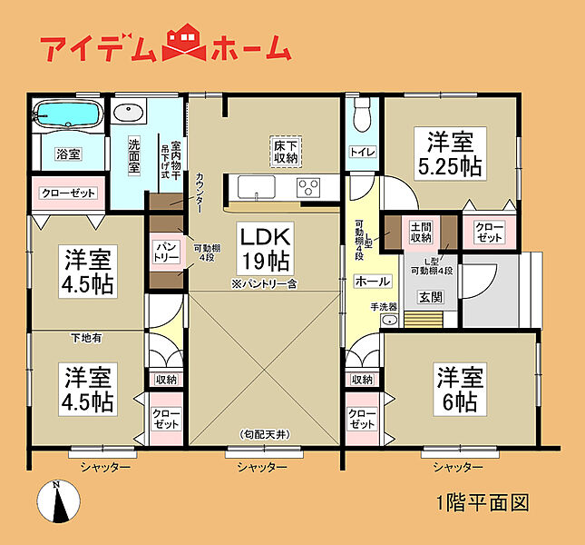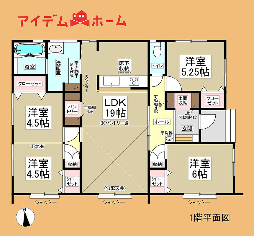 パントリー等収納豊富な間取り!広々洗面で朝の身支度もスムーズ!駐車2台可能!(車種による)