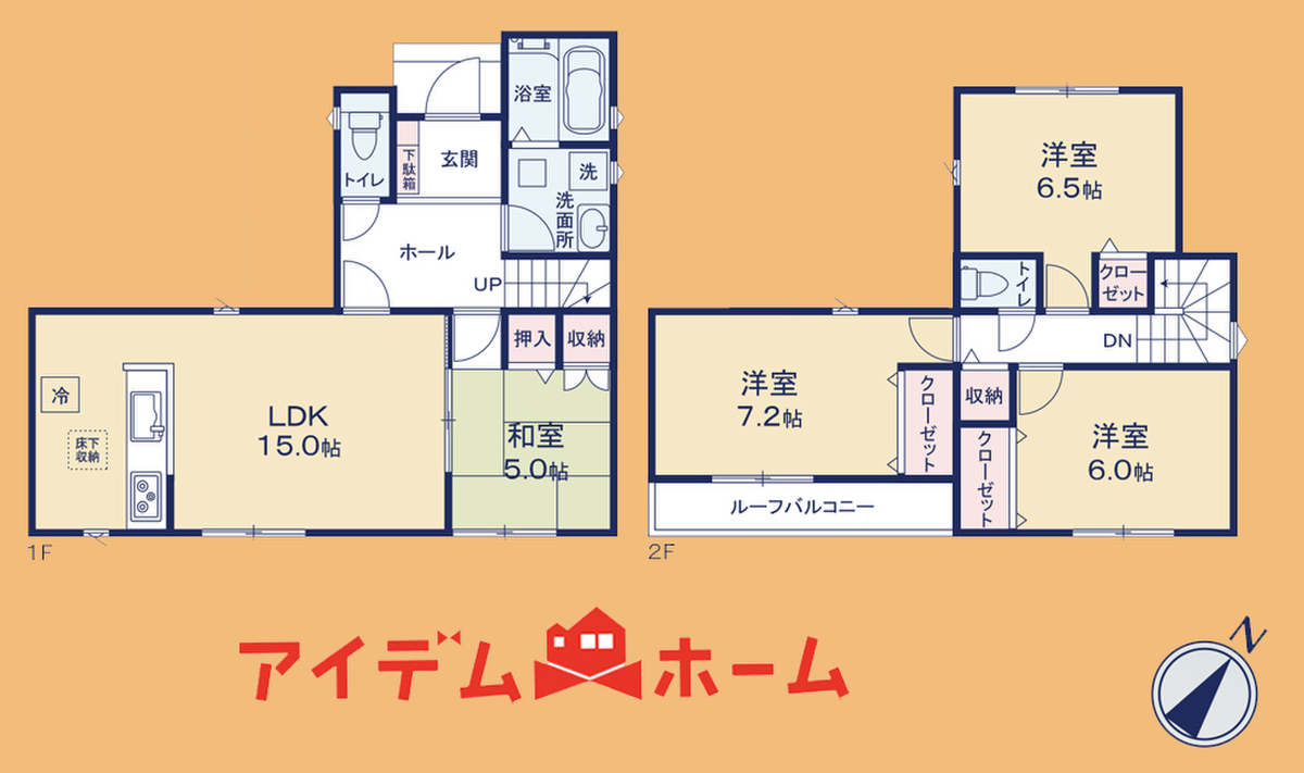 ルーフバルコニー付き!2階の居室6帖以上!全居室収納付き!