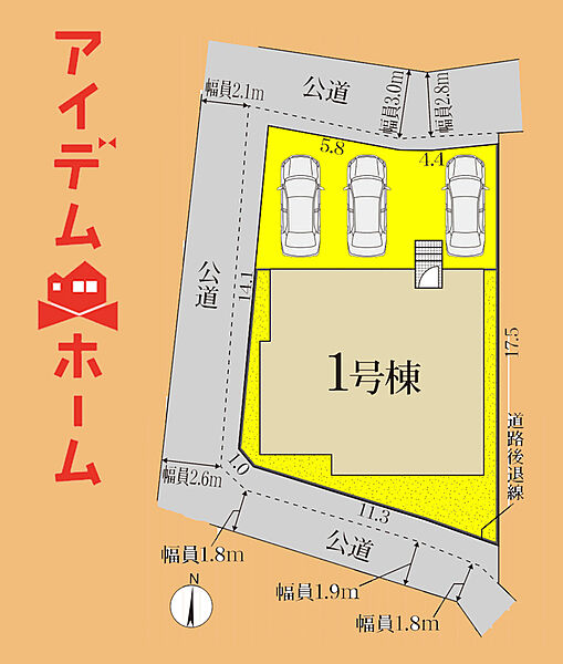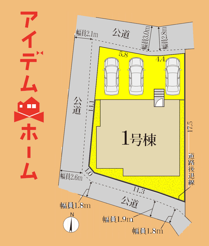 | 駐車場 | 駐車3台可能 | 道路の幅員 | 北側幅員4.0m公道、西側幅員4.0m公道、南側幅員4.0m公道 |