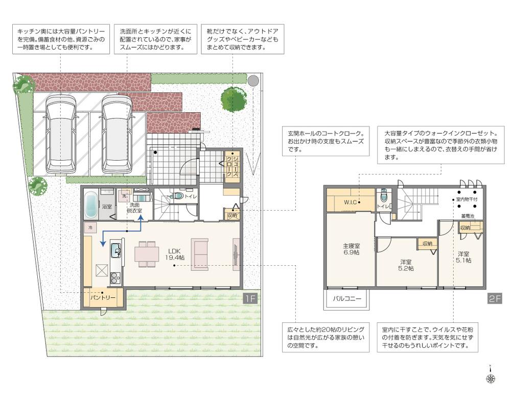 | 建物面積 | 85.37m2(25.82坪)~ 119.46m2(36.13坪) | 土地面積 | 185.19m2(56.01坪)~ 235.09m2(71.11坪) |