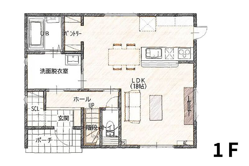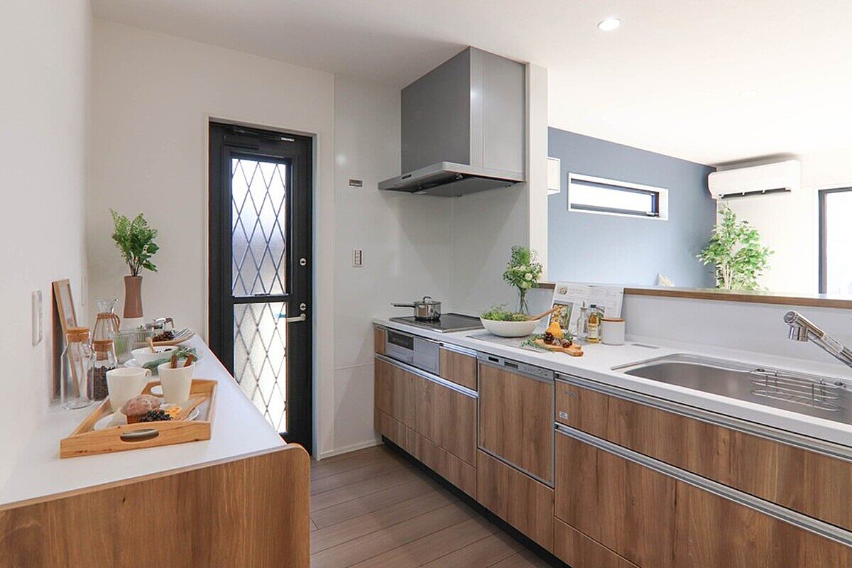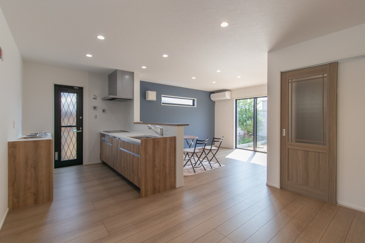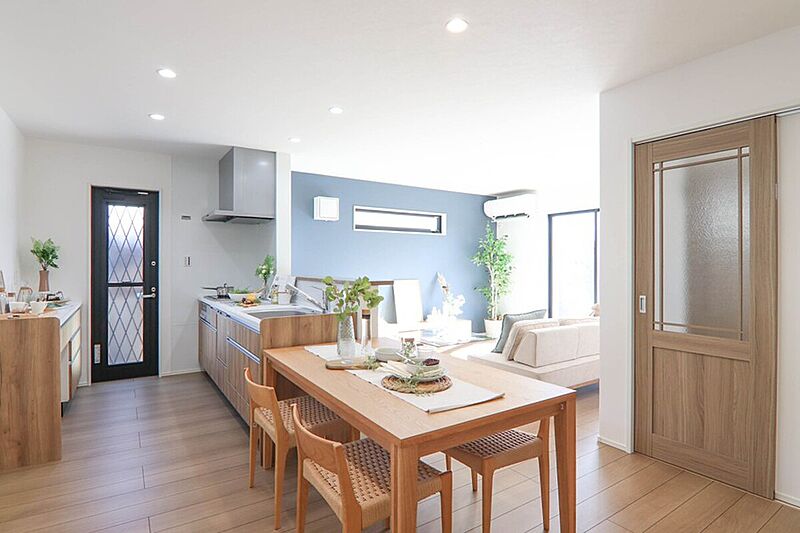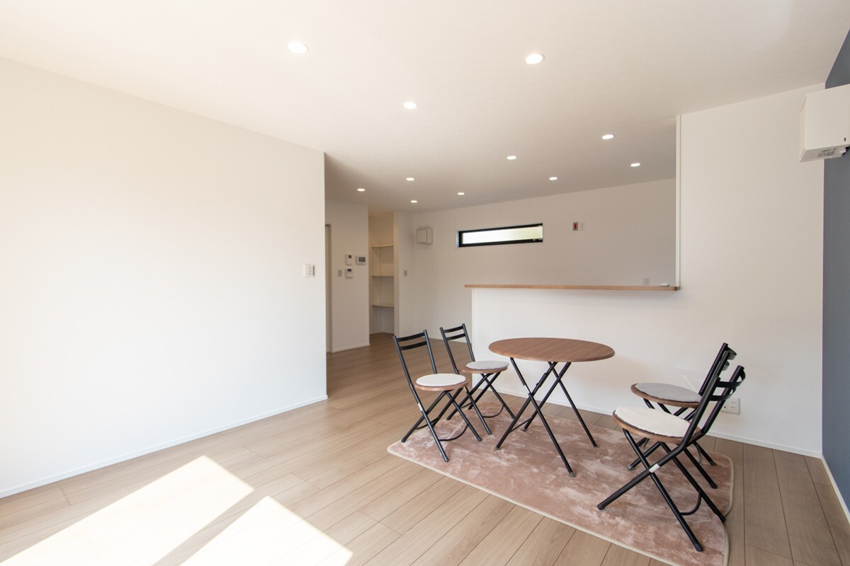 床波10号地の分譲住宅は、光と開放感を大切にした設計が魅力です。18帖の広々LDKは大きな窓からたっぷり自然光が差し込み、家族みんなが心地よく過ごせる空間に。対面キッチンからはリビングが一望でき、子育て世帯にも安心。洗面脱衣室や玄関収納など、暮らしを支える工夫が詰まった住まいです。