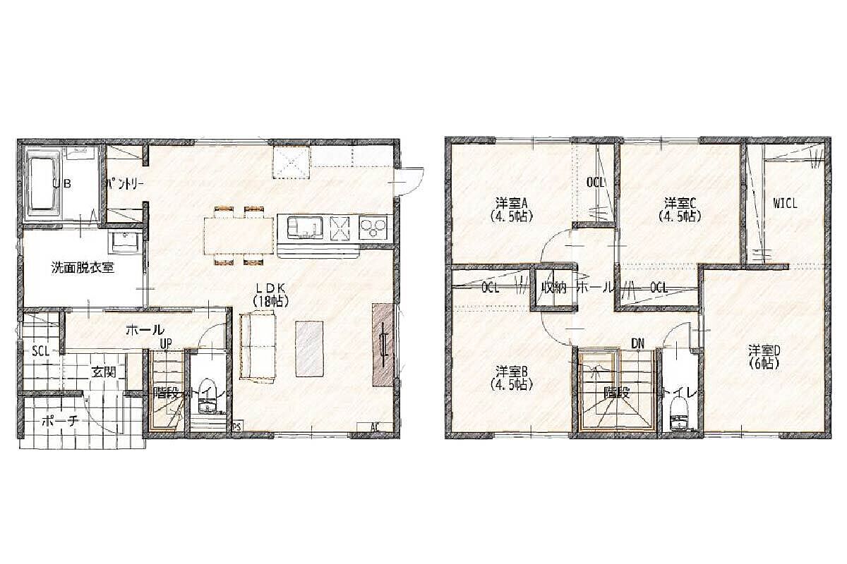 新築一戸建て 【宇部市】床波(2階建て/4LDK)
