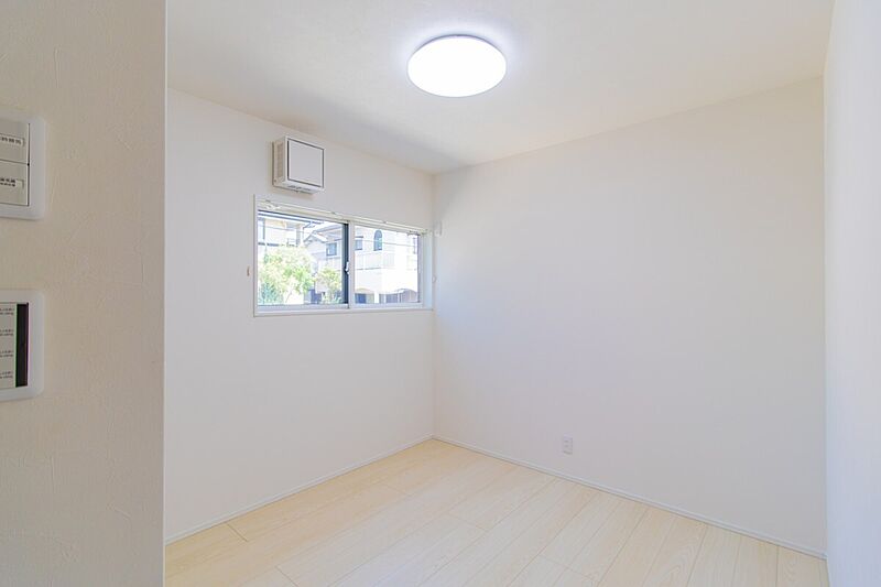 ナチュラルなフローリングと白い壁が明るく、子ども部屋や趣味の空...