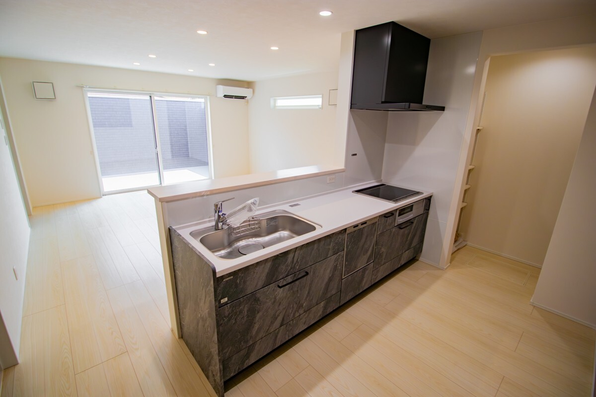 リビング全体を見渡せるカウンターキッチン。家事をしながらでも家...