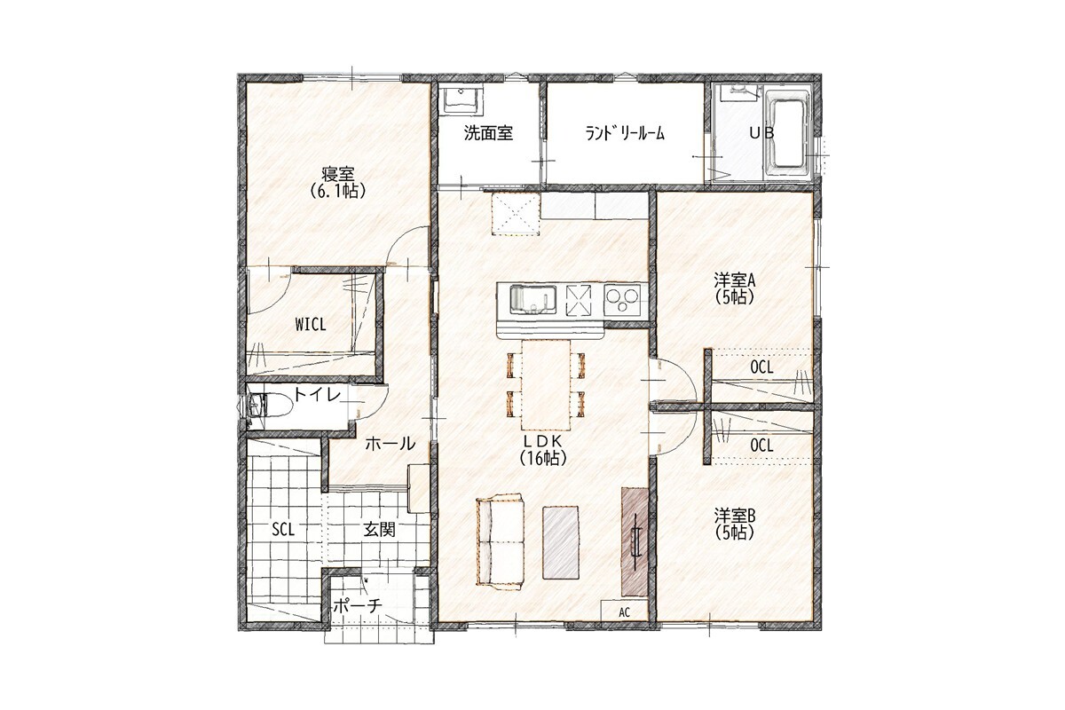【暮らしやすい設計】平屋ならではのワンフロア動線と豊富な収納で家事も片付けもスムーズ。
