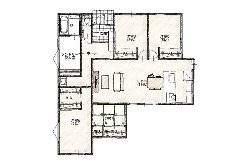 | 間取り | 3LDK+畳スペース | 建物構造 | 木造1階建(軸組工法) |