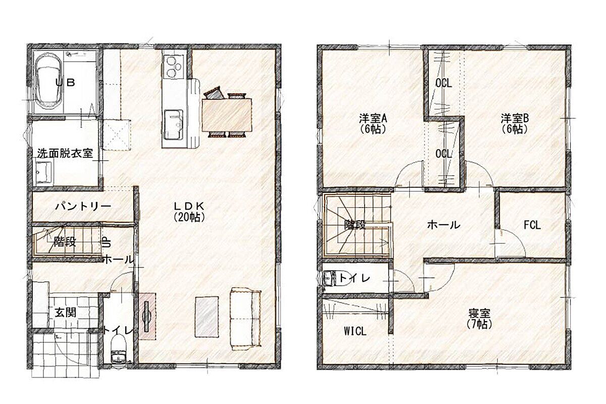 【こちらは商談中の物件です】20帖の広々LDKにパントリーやWICL付きで、収納力も抜群。家事動線が良く、忙しいママも快適に過ごせる間取りです。