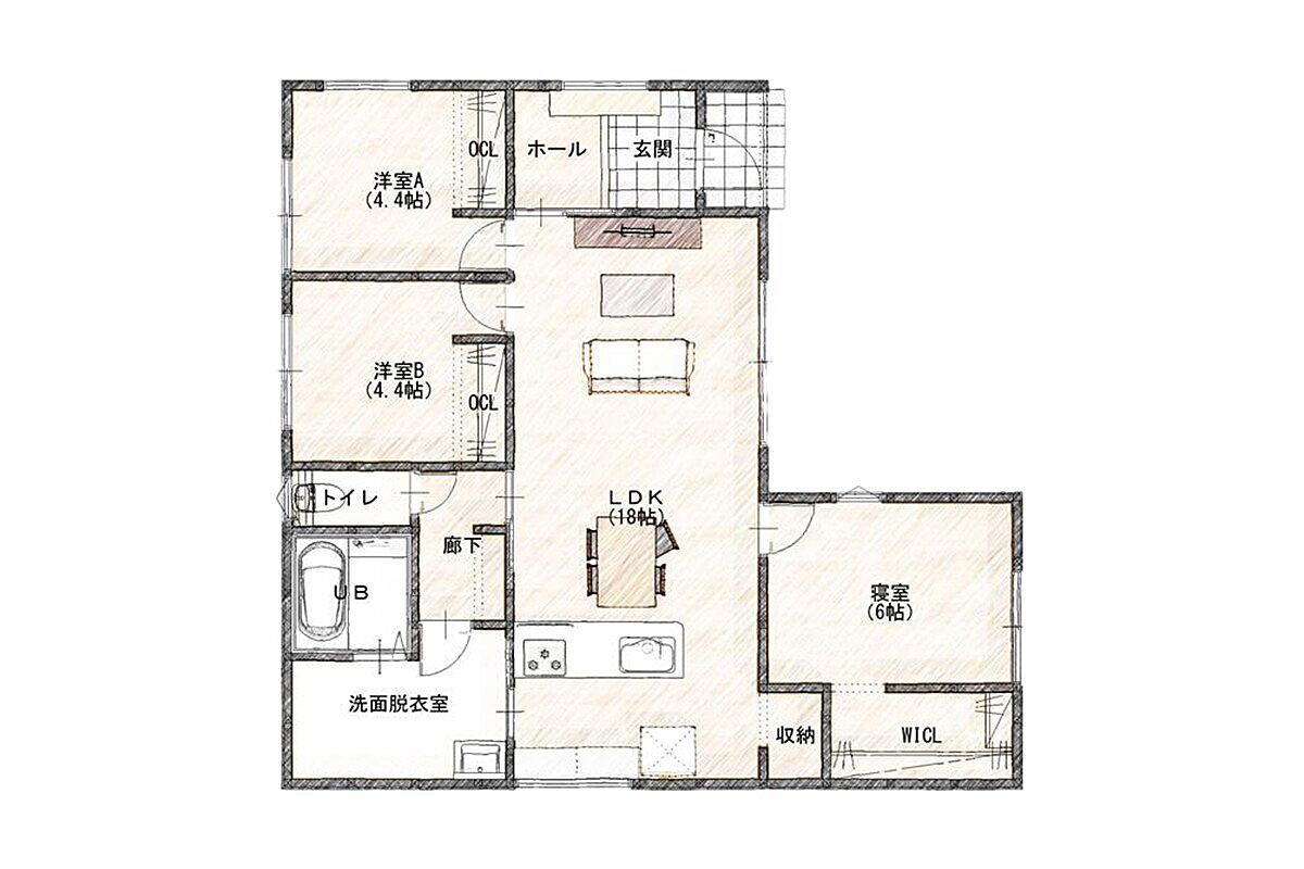 ワンフロアで生活が完結する3LDK平屋。家事動線が短く、子育て中も将来も安心して暮らせます。