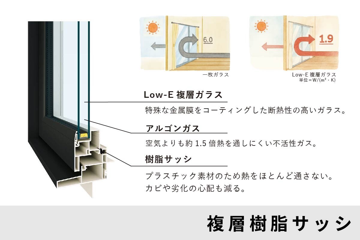 高性能な複層ガラス+樹脂フレームのサッシ...