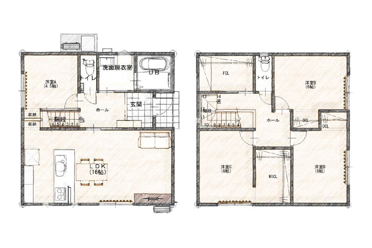 【家族で使える4LDK】16帖LDK・1階4.5帖洋室つき。子育て中の在宅・来客にも柔軟に対応。
