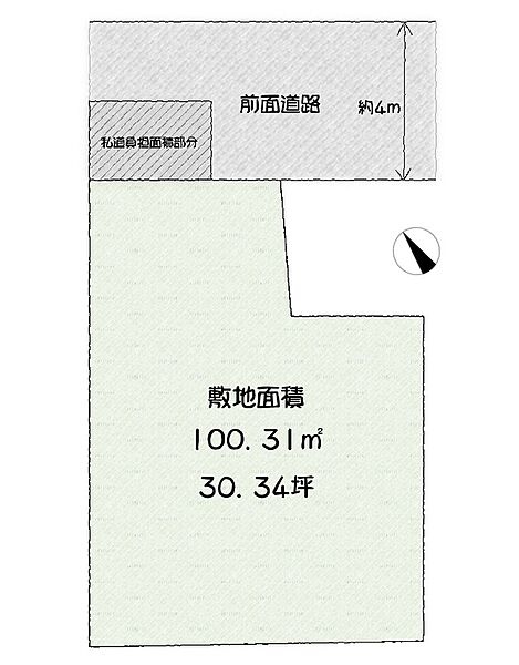 | 駐車場 | 1台 | 道路の幅員 | 私道負担面積:6.16m2(約1.86坪) |