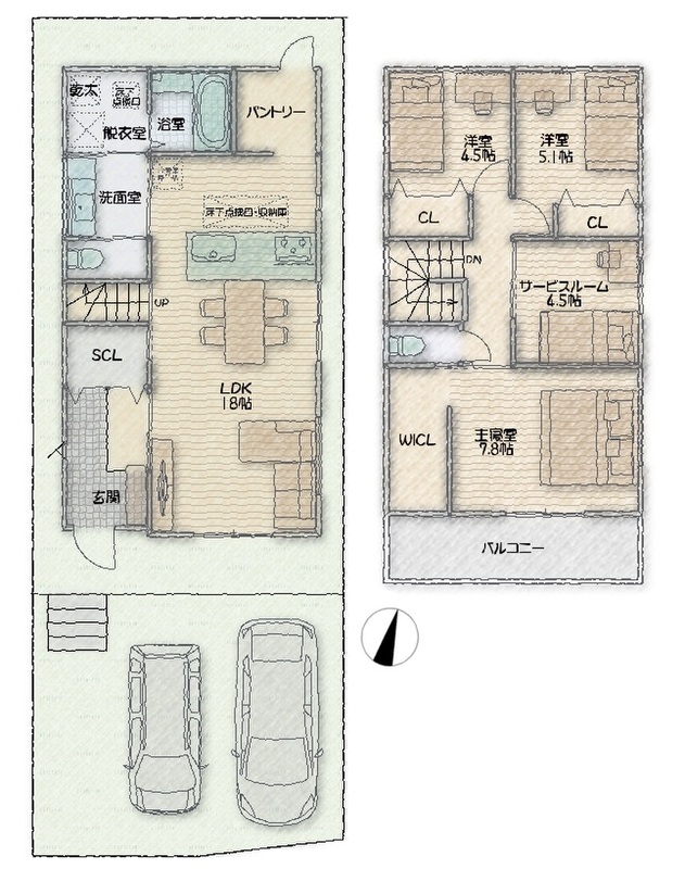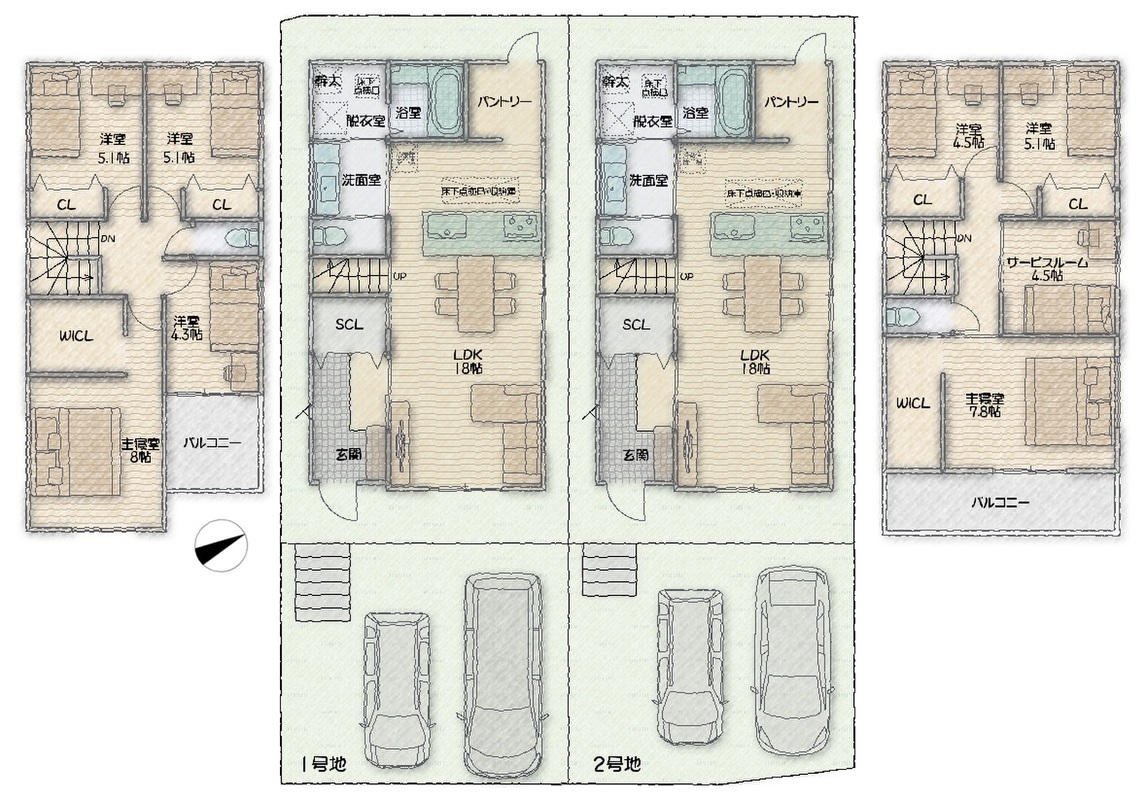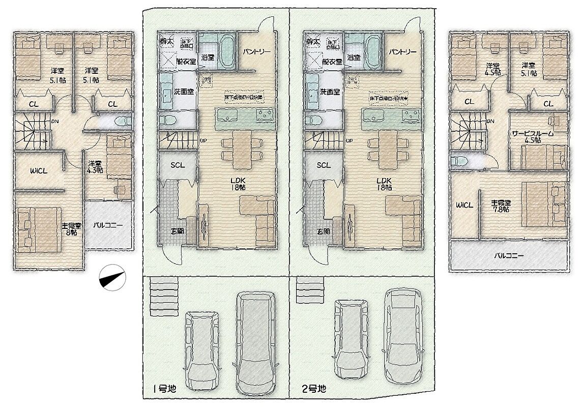 - (1号地)4LDK(2号地)3LDK+S