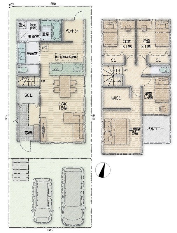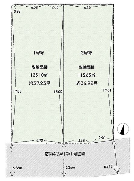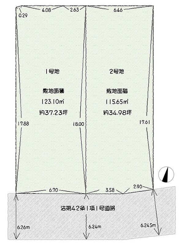| 建物面積 | (1号地)106.75m2(2号地)106.55m2 | 土地面積 | (1号地)123.10m2(2号地)115.65m2 |