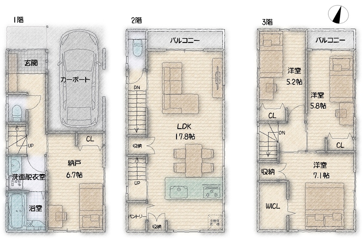 | 間取り | 3LDK+S | 建物構造 | 木造3階建 |