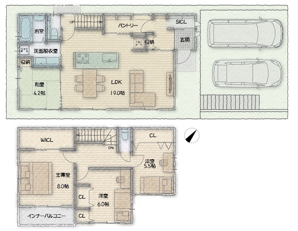 - ※完成予想図やCG合成画像は、門塀・植栽・庭・外観等、実際とは多少異なる場合があります。