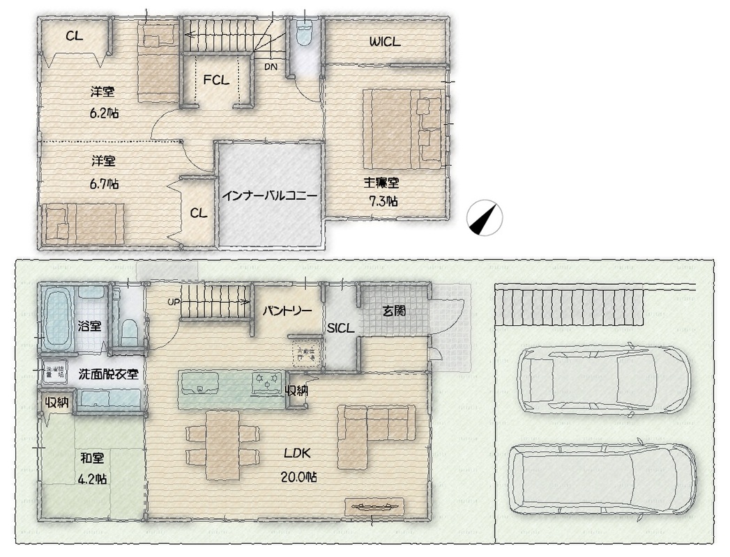 ・車2台駐車可能