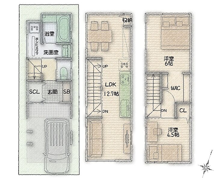 - ※完成予想図やCG合成画像は、門塀・植栽・庭・外観等、実際とは多少異なる場合があります。
