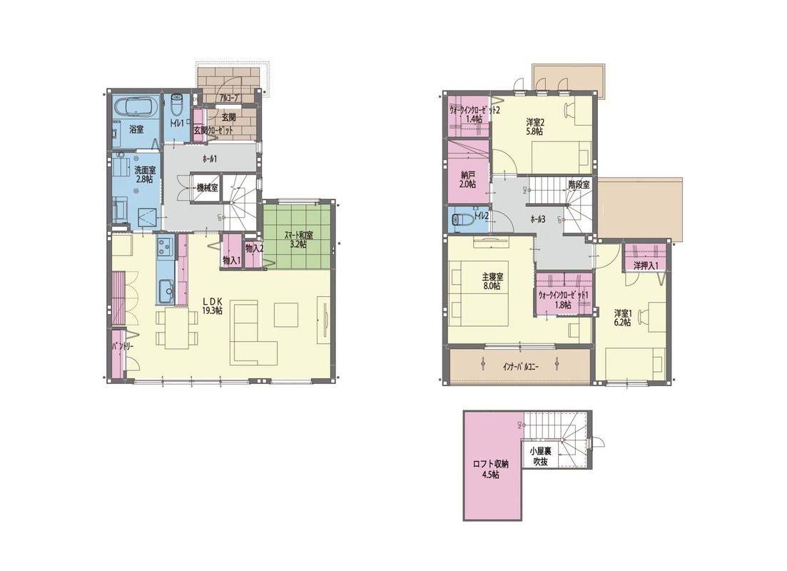 | 建物面積 | 99.18m2(30.00坪)~119.54m2(36.16坪) | 土地面積 | 189.39m2(57.29坪)~198.77m2(60.12坪) |