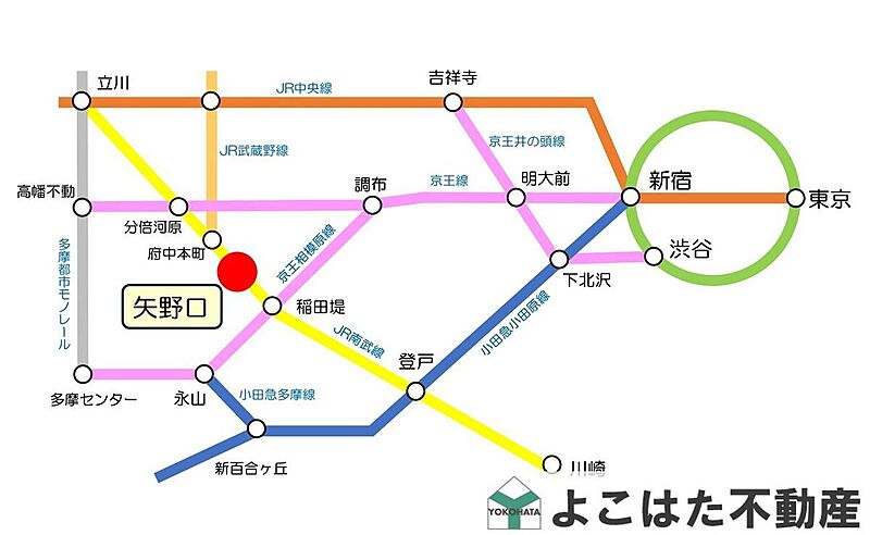 - JR南武線「矢野口」駅 徒歩11分~11分京王線「武蔵野台」駅 車9分3.2km京王相模原線「京王よみうりランド」駅 車7分2.2km