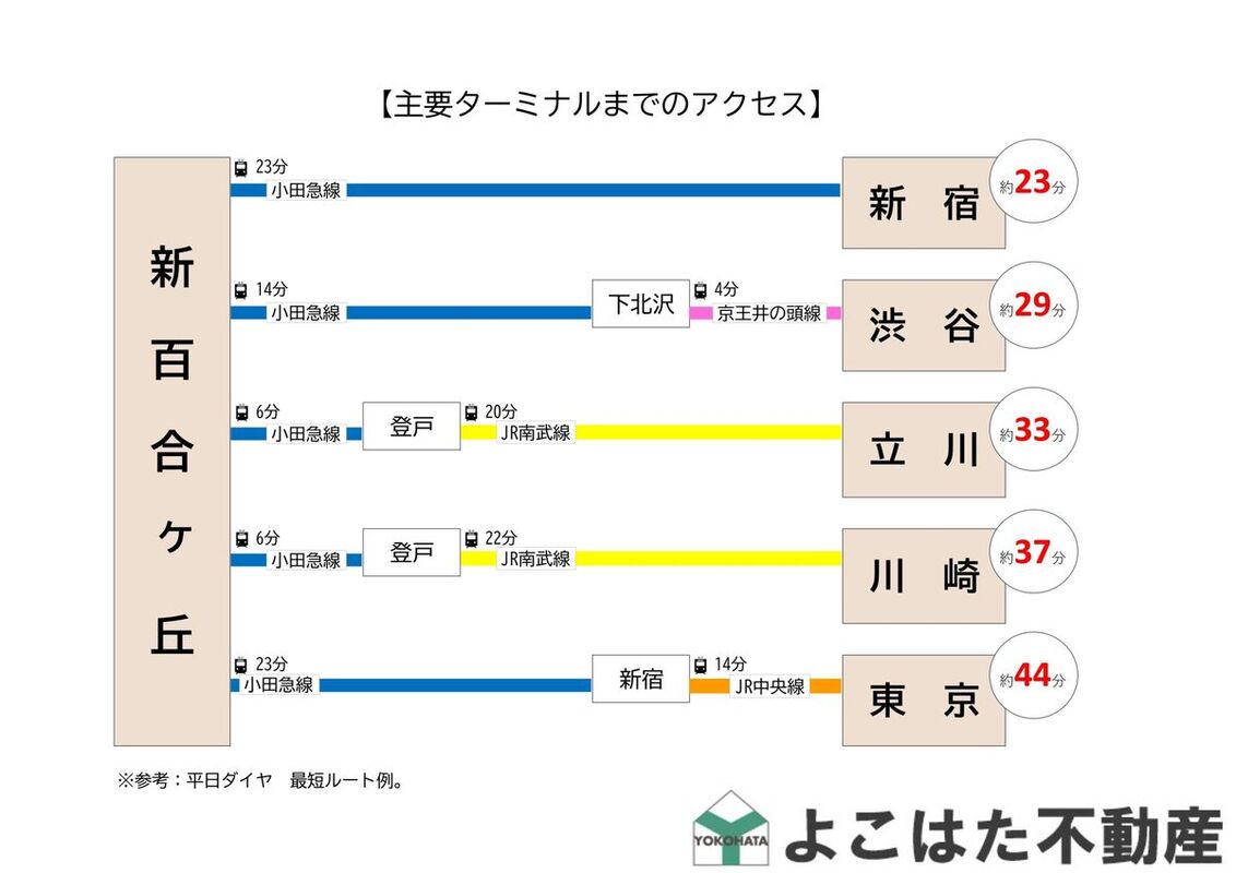 - 小田急多摩線「新百合ヶ丘」駅 「台原」バス乗車15分 徒歩4分小田急多摩線「栗平」駅 「上平尾」バス乗車6分 徒歩10分小田急多摩線「五月台」駅 車3.2km