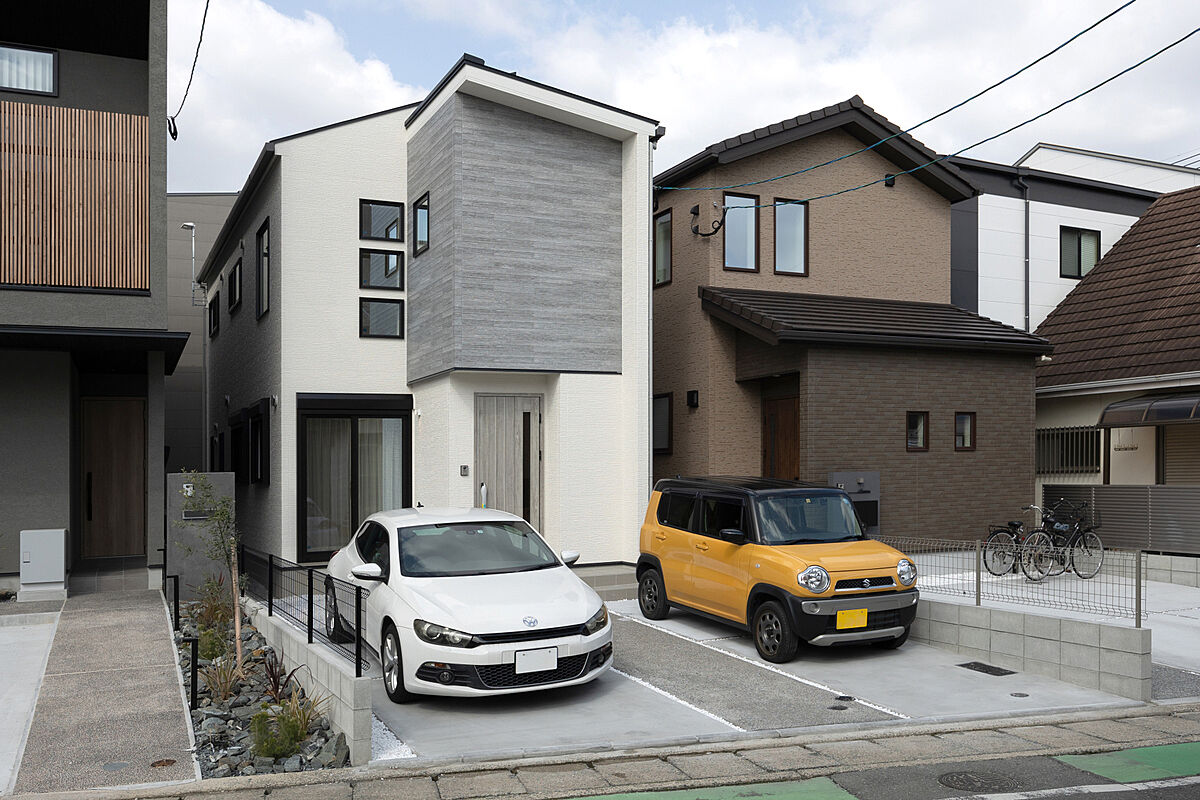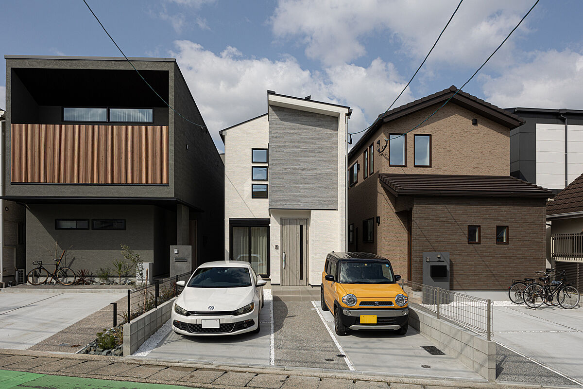 前面道路は6m以上と広く、車の出し入れもスムーズ。