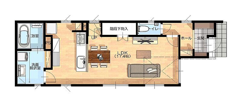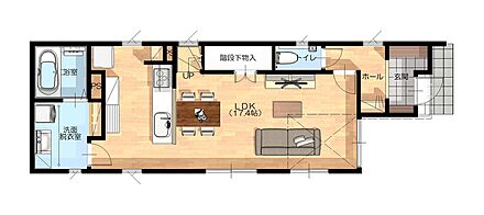 明るい玄関に広がる広々とした土間収納。家族を温かく迎える、心地...